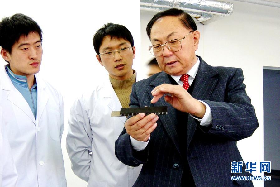 中國工程院院士、哈爾濱工業(yè)大學(xué)教授杜善義(右)為學(xué)生講解復(fù)合材料(資料照片)。新華社發(fā)