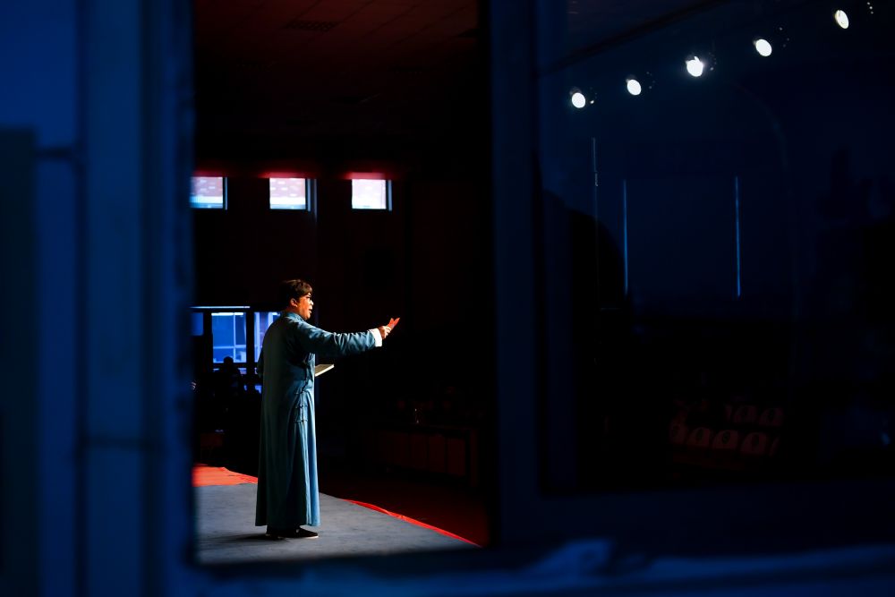 在各個(gè)舞臺(tái)間轉(zhuǎn)場(chǎng)的間隙,武凌云帶著戲劇妝容,向記者講述了一年來的生活。