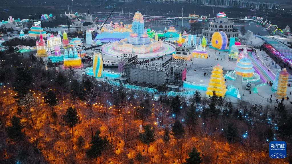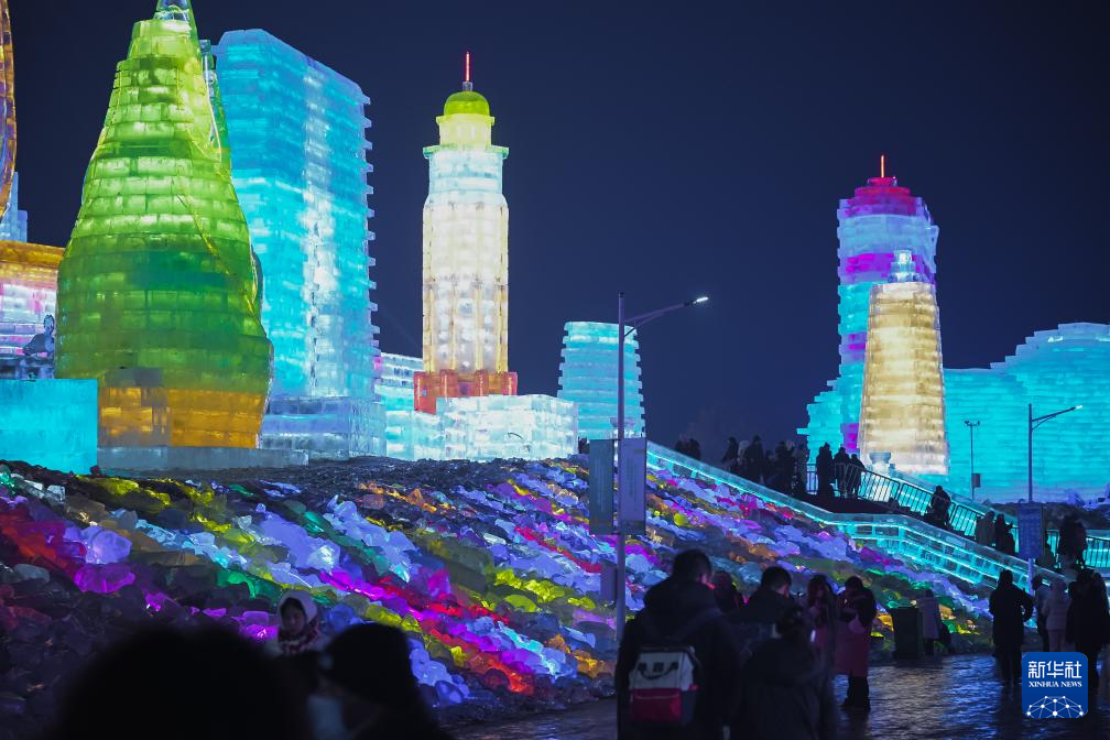 第七届长春冰雪新天地于当晚正式开园迎客。吉林省建设集团相关负责人介绍,本届园区以“冰雪福耀中华·民族大团结”为主题,在占地156万平方米的园区内,除巧夺天工的巨型冰雪雕塑群外,还打造了76万平方米的冰雪游乐空间,配套建设60余条风格各异的冰雪滑梯及30多种趣味游乐设施,为游客提供丰富多元的冰雪娱乐体验。
