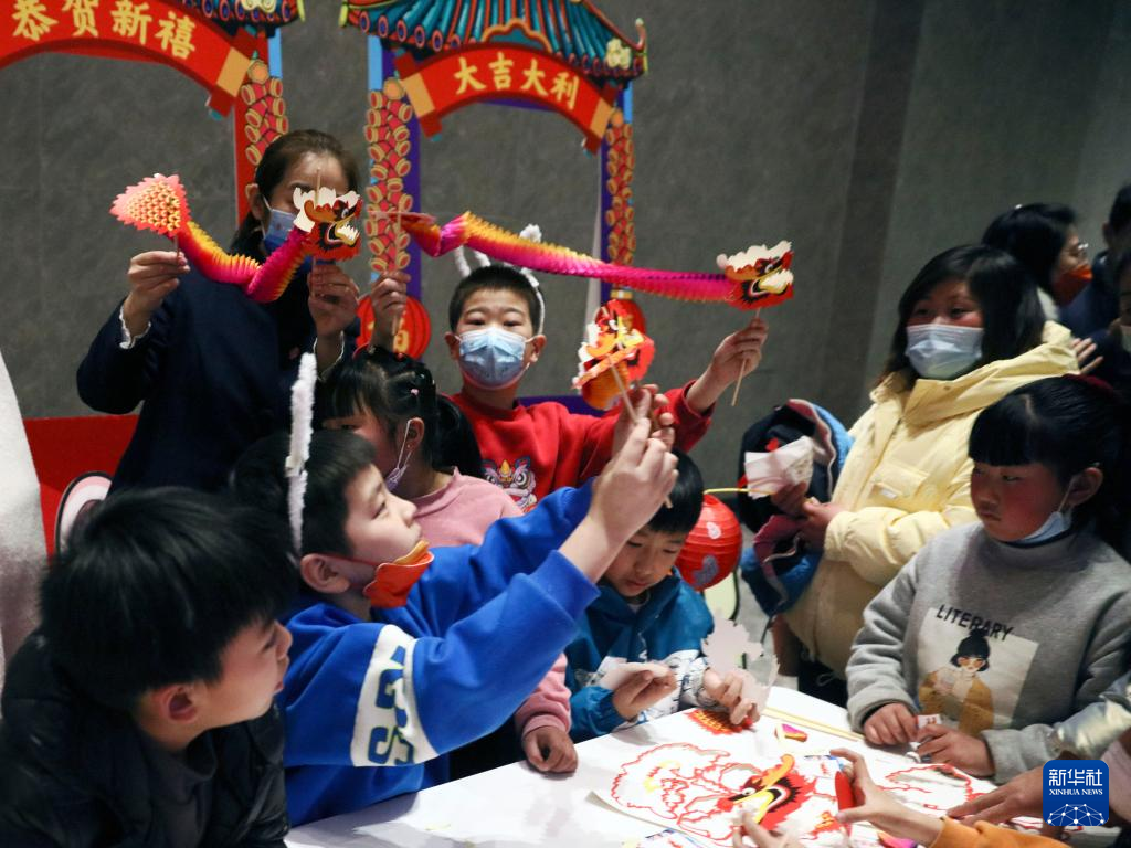 2月4日,小朋友在中国文字博物馆体验手工制作活动。