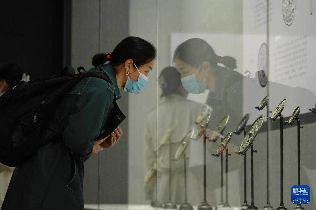 3月21日,石家庄市民在河北博物院举办的“镜·相——中国古代铜镜展”现场参观。