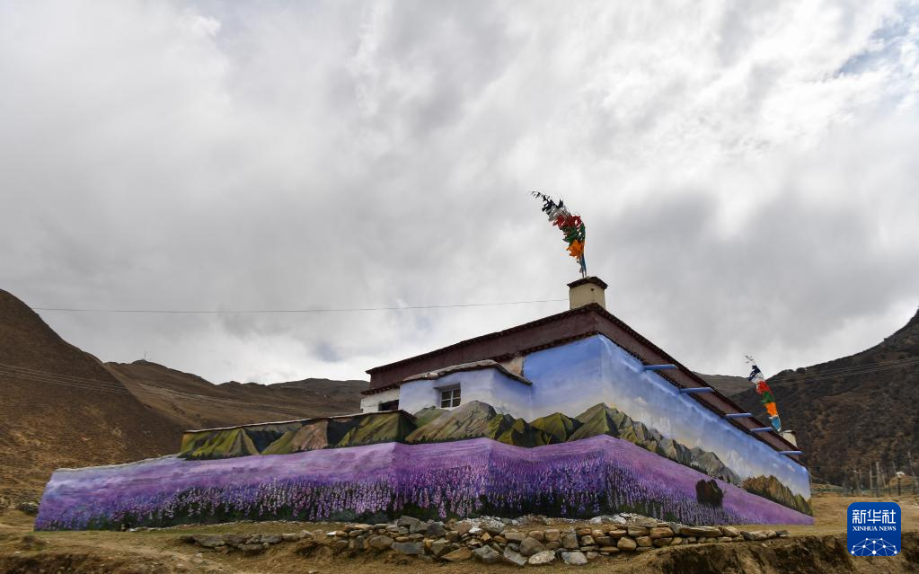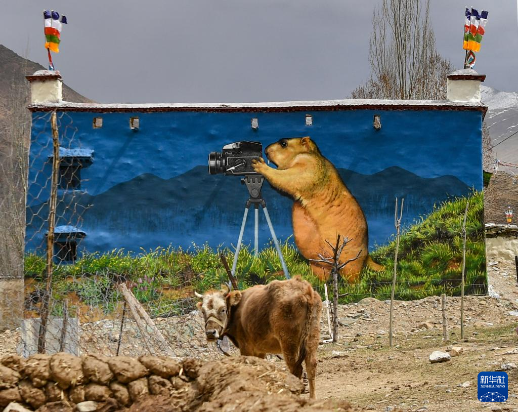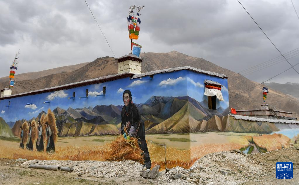 这是4月10日在拉萨市达孜区章多乡恰村拍摄的墙画。