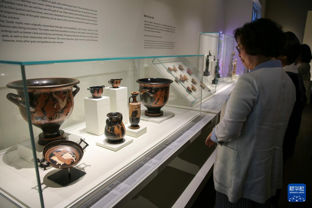 6月14日,人们在韩国首尔国立中央博物馆参观古希腊和古罗马文物展品。