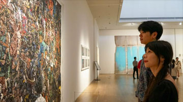 参观者在西安半坡博物馆里了解半坡人的特征(8月9日摄)。