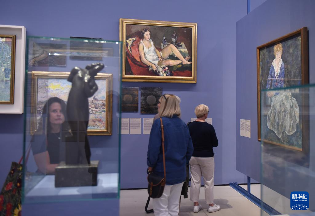 8月31日,在奥地利维也纳,一名观众在下美景宫内参观展品。