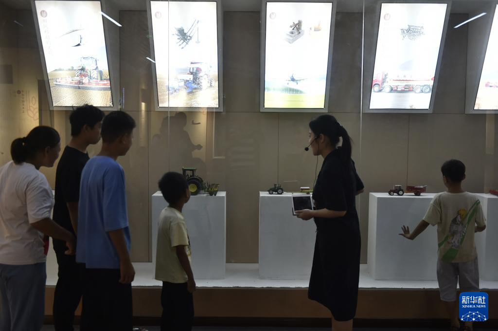 9月16日,讲解员(右二)在温县小麦博物馆为观众介绍展品。