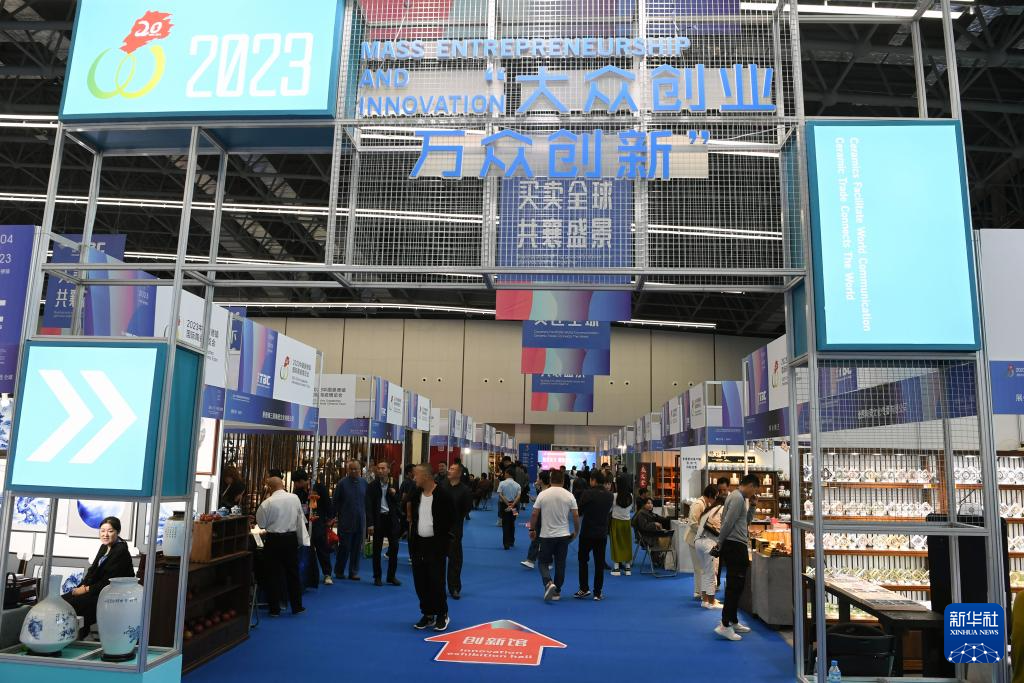 10月18日拍摄的瓷博会大众创业万众创新展区。