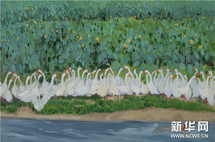 李江峰《鹅鹅鹅》100x80cm 2023年