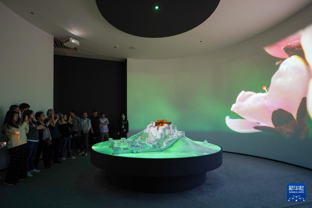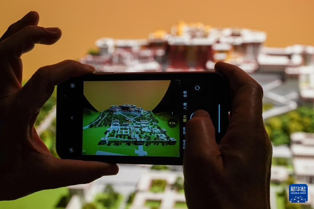 5月11日,观众在展出现场参观拍摄布达拉宫模型。