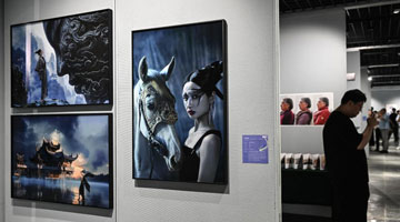 6月1日,一名男孩站在美国加利福尼亚州阿拉米达县的一处沙雕作品前。