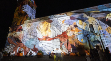 7月16日,参观者在汉魏洛阳故城遗址博物馆观看展品陶百花灯。