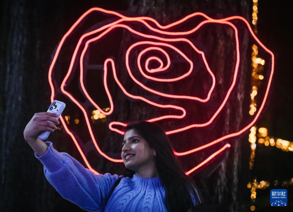 加拿大北温哥华的卡皮拉诺吊桥公园近日举行情人节主题灯光活动,为即将到来的节日增添浪漫氛围。