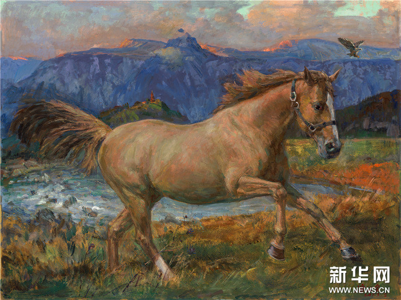 潘义奎 奔腾的骏马 布面油彩 120cm×160cm 2023 艺术家藏