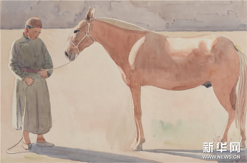 韩乐然 和硕名马 纸本水彩 32cm×47.5cm 1946 中国美术馆藏