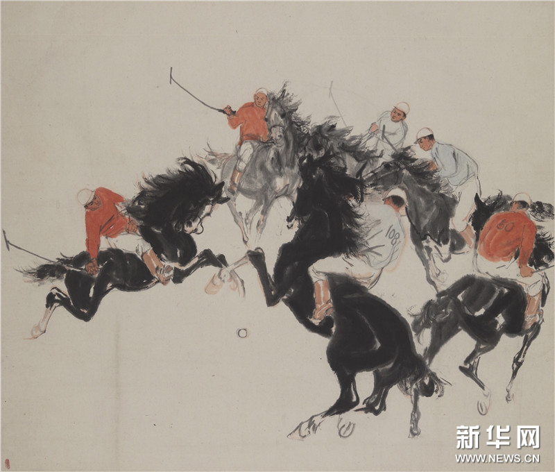 打马球 纸本水墨设色 137cm×162.1cm 1953 中国美术馆藏
