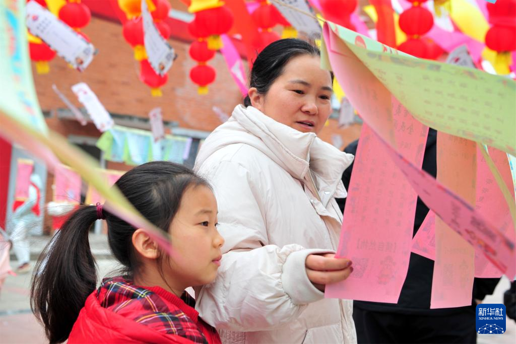 3月2日,人们在江苏省江阴市长泾镇举办的迎元宵活动上猜灯谜。