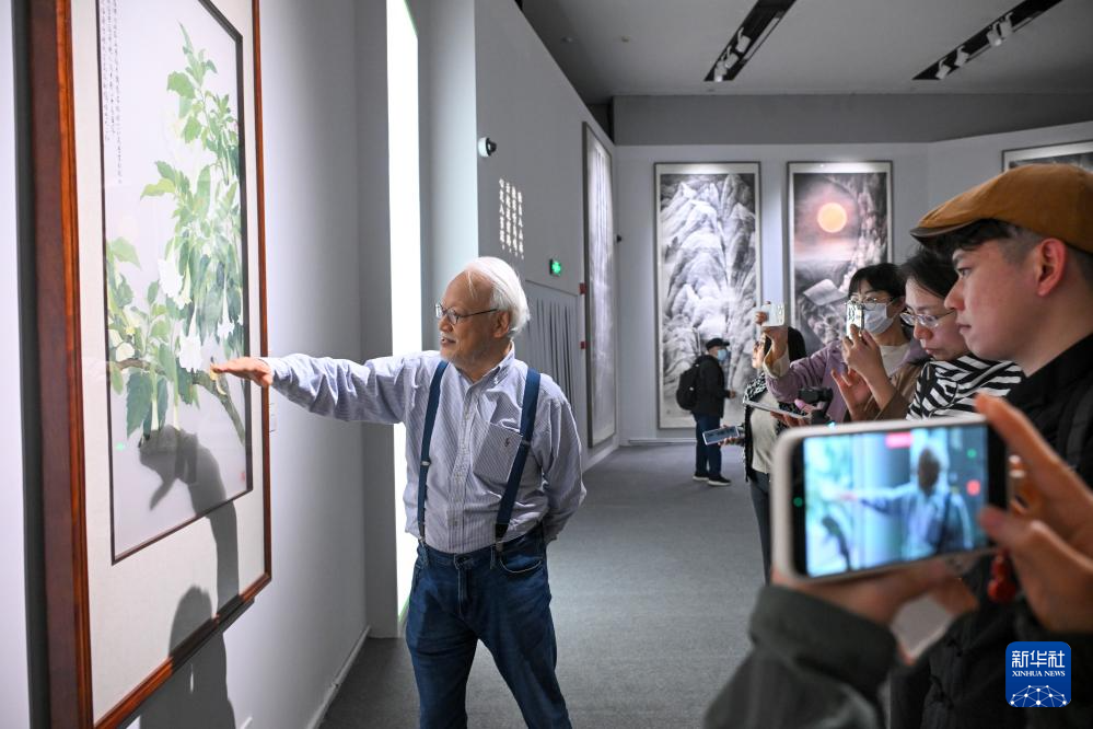 4月10日,刘墉介绍自己的画作。