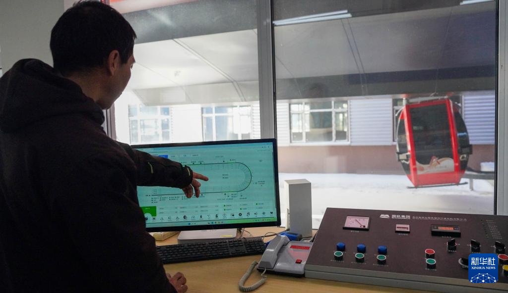 12月2日,吉林市北大湖滑雪度假区缆车站工作人员使用智能化装备操作缆车运行。新华社记者 颜麟蕴 摄