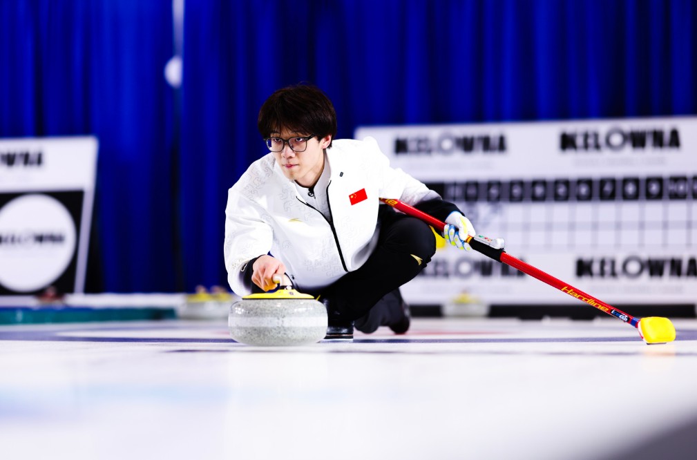 于森在比赛中。图片来自世界冰壶联合会网站