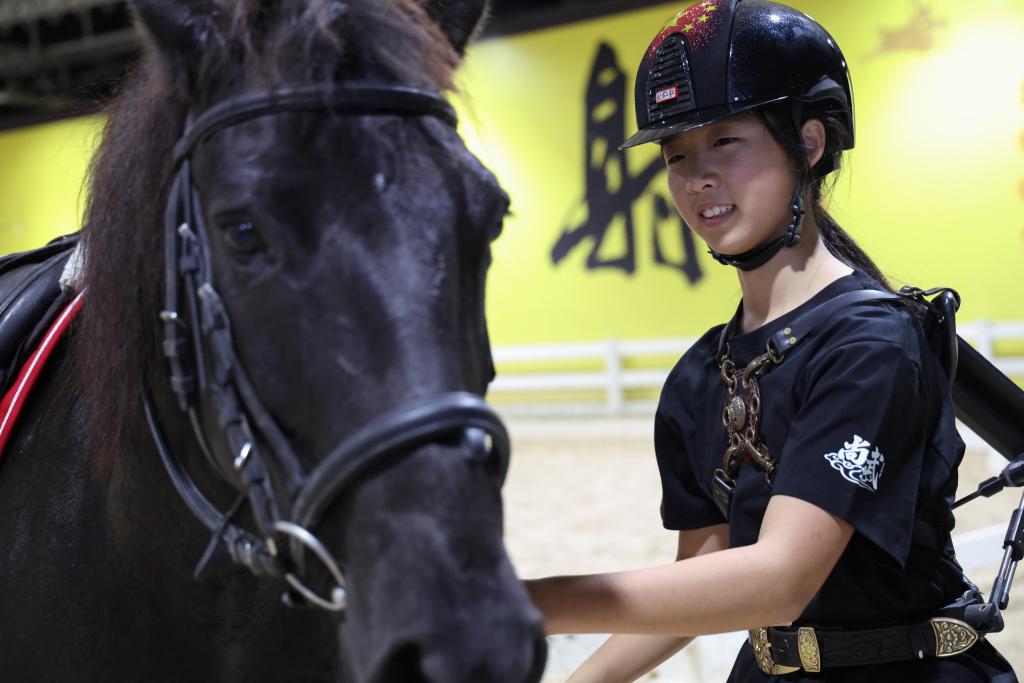 2025年12月17日,吴童雨和她的马“巧克力”。新华社记者 梁旭 摄