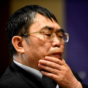 这是2017年11月4日,聂卫平在2017“象屿杯”海峡两岸围棋与人工智能邀请赛人机配对赛中思考。新华社记者 郭绪雷 摄