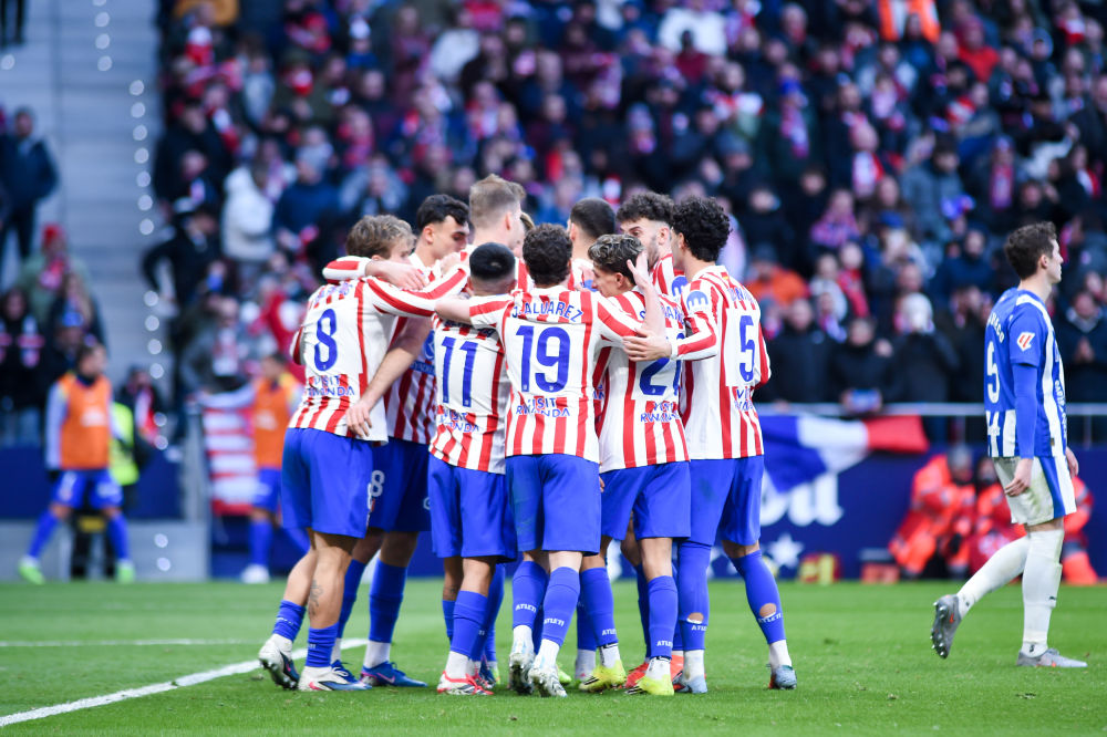 1月18日,马德里竞技队球员瑟洛特(左三)进球后与队友庆祝。新华社发(古斯塔沃·巴连特摄)