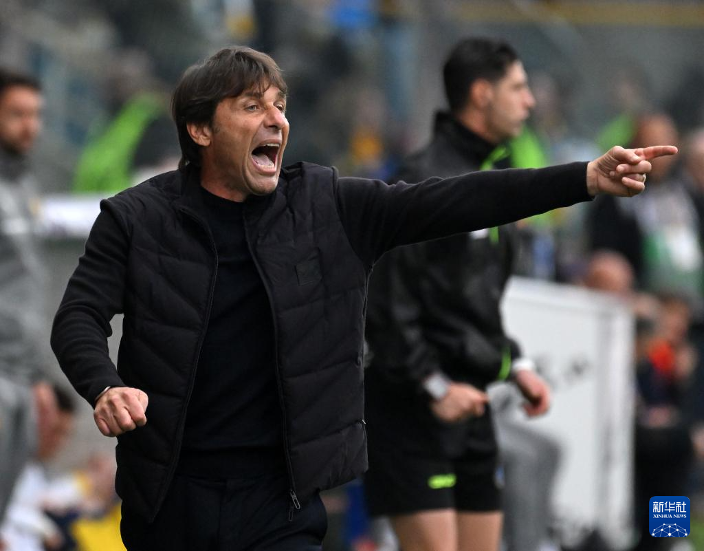 4月12日,那不勒斯队主教练孔蒂在场边指挥。