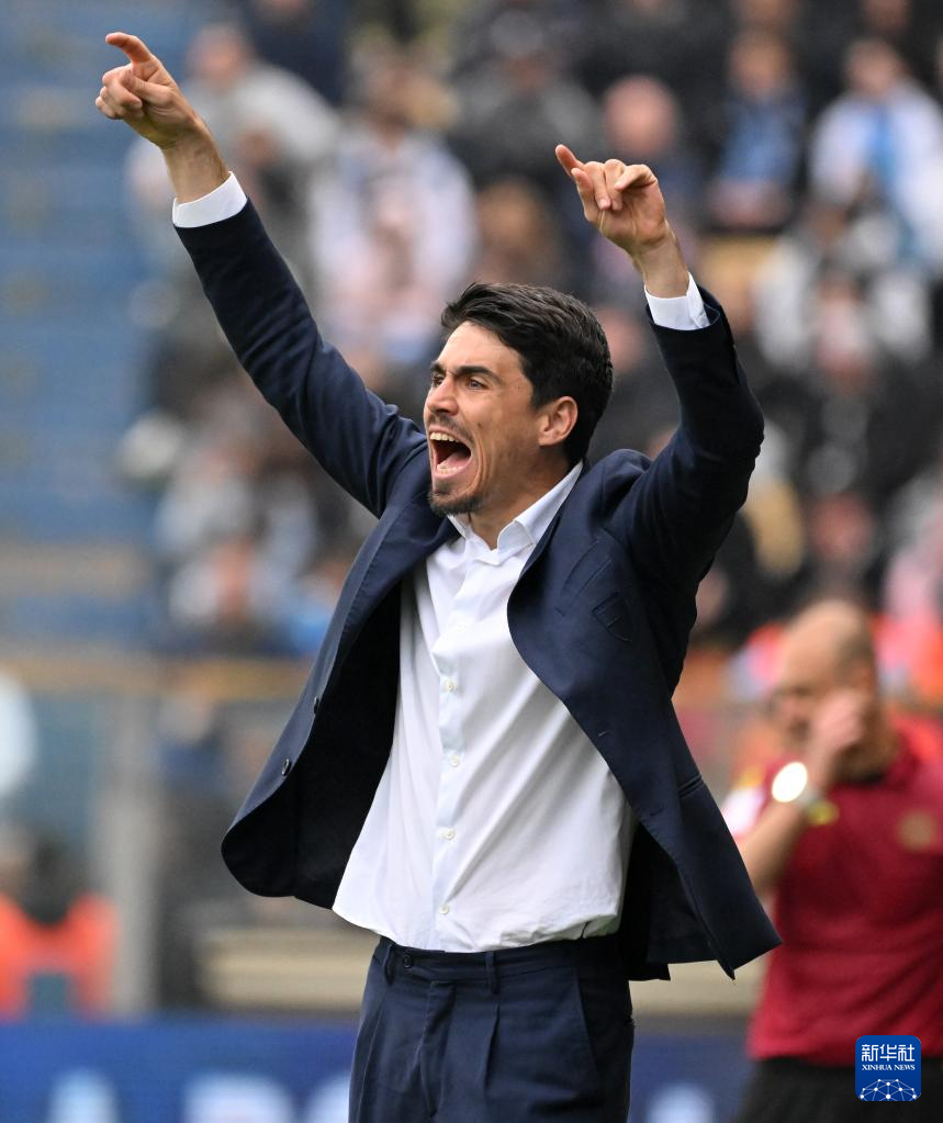 4月12日,帕尔马队主教练奎斯塔在场边指挥。
