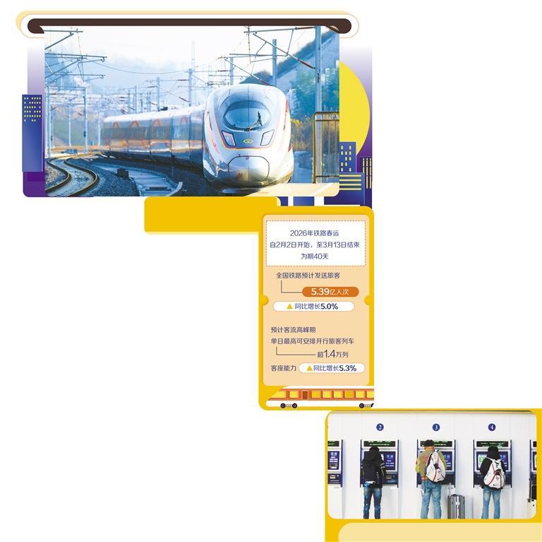 “充分运用发达完善高铁网和现代化铁路网,特别是用好2025年新开通的线路、车站和一批新投用的复兴号动车组,在2026年一季度图日常线、周末线列车开行方案的基础上,科学编制春运列车运行图,进一步安排加开旅客列车,根据客流需求梯次投放运力,预计客流高峰期单日最高可安排开行旅客列车超1.4万列,客座能力同比增长5.3%。”中国国家铁路集团有限公司客运部负责人介绍。