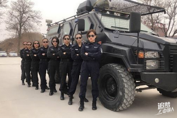 渭南市臨渭區(qū)巡特警隊伍中英姿颯爽的女警察。受訪者供圖