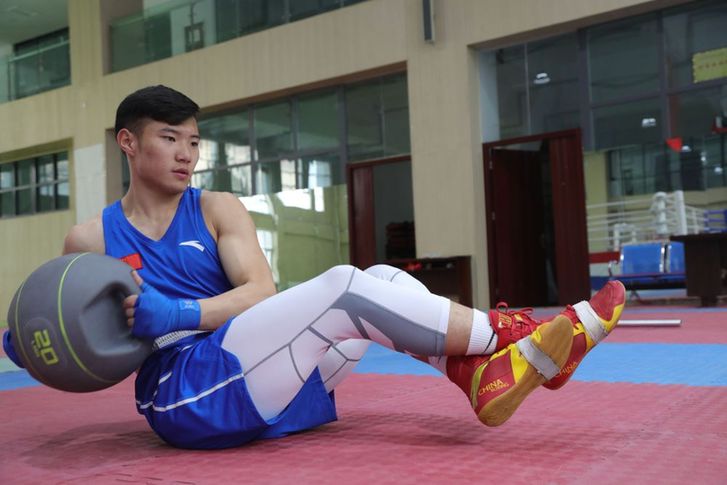 “通過啞鈴鍛煉肩部耐力,腳腕綁沙袋練習(xí)移動(dòng)速度,用杠鈴加強(qiáng)出拳力量和爆發(fā)力,配合手靶全面練習(xí)。因?yàn)槭菑牧汩_始,要想拿到成績,必須付出成倍的努力。”趙佳偉說。