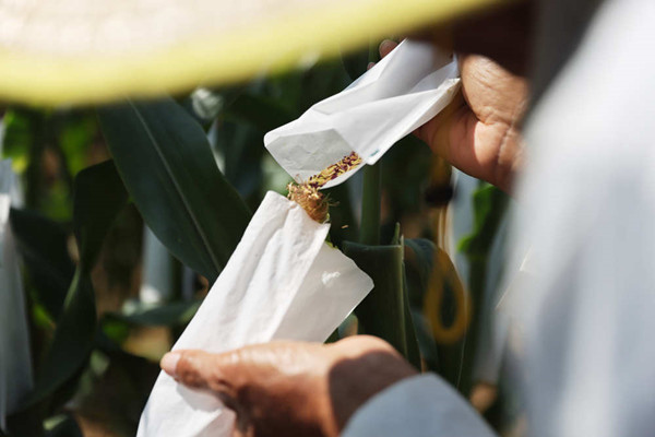 眼下的三亞陽光明媚,春意盎然。晨曦初露,程相文就戴上草帽、穿上白大褂一頭鉆進(jìn)玉米地,領(lǐng)著助手套袋、授粉,觀察葉片、根系長勢并詳細(xì)記錄,在地里一待就是五六個(gè)小時(shí)。常年高溫暴曬,程相文皮膚黝黑,摘下眼鏡后就像個(gè)農(nóng)家老漢。