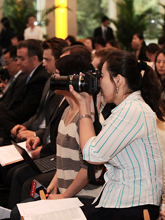 2009年10月8日至10日,世界媒體峰會(huì)在中國北京舉行,中國國家主席胡錦濤出席開幕式并發(fā)表重要演講。這是一次史無前例的世界傳媒盛會(huì),來自世界各地的通訊社、報(bào)刊、廣播、電視、網(wǎng)絡(luò)等各種形態(tài)的170多家傳媒機(jī)構(gòu)參加了峰會(huì)。世界媒體峰會(huì)由新華社與新聞集團(tuán)、美聯(lián)社、路透社、俄塔社、共同社、英國廣播公司、時(shí)代華納特納集團(tuán)、谷歌等九家世界著名媒體機(jī)構(gòu)共同發(fā)起,新華社承辦。 |