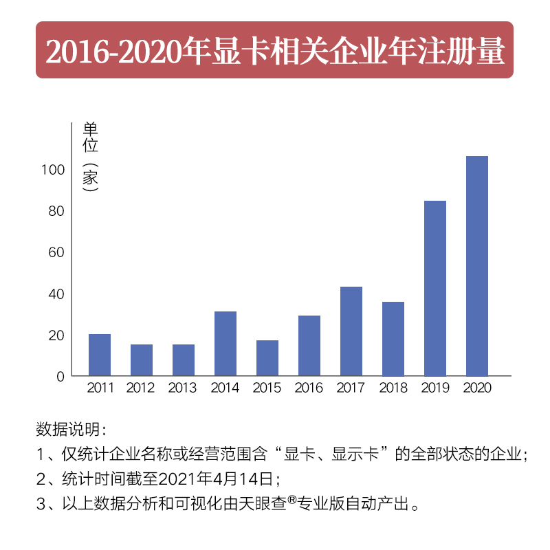 ????? 得益于旺盛的市場(chǎng)需求,以及消費(fèi)者對(duì)顯卡需求的提高,越來(lái)越多的企業(yè)投入顯卡生產(chǎn)。我國(guó)顯卡相關(guān)企業(yè)(全部企業(yè)狀態(tài))新增數(shù)量呈現(xiàn)波動(dòng)上漲趨勢(shì)。其中,2019年,新增80余家顯卡相關(guān)企業(yè),增速達(dá)到17.4%,2020年,新增超過(guò)100家,增速高達(dá)18.7%,為近十年最高。