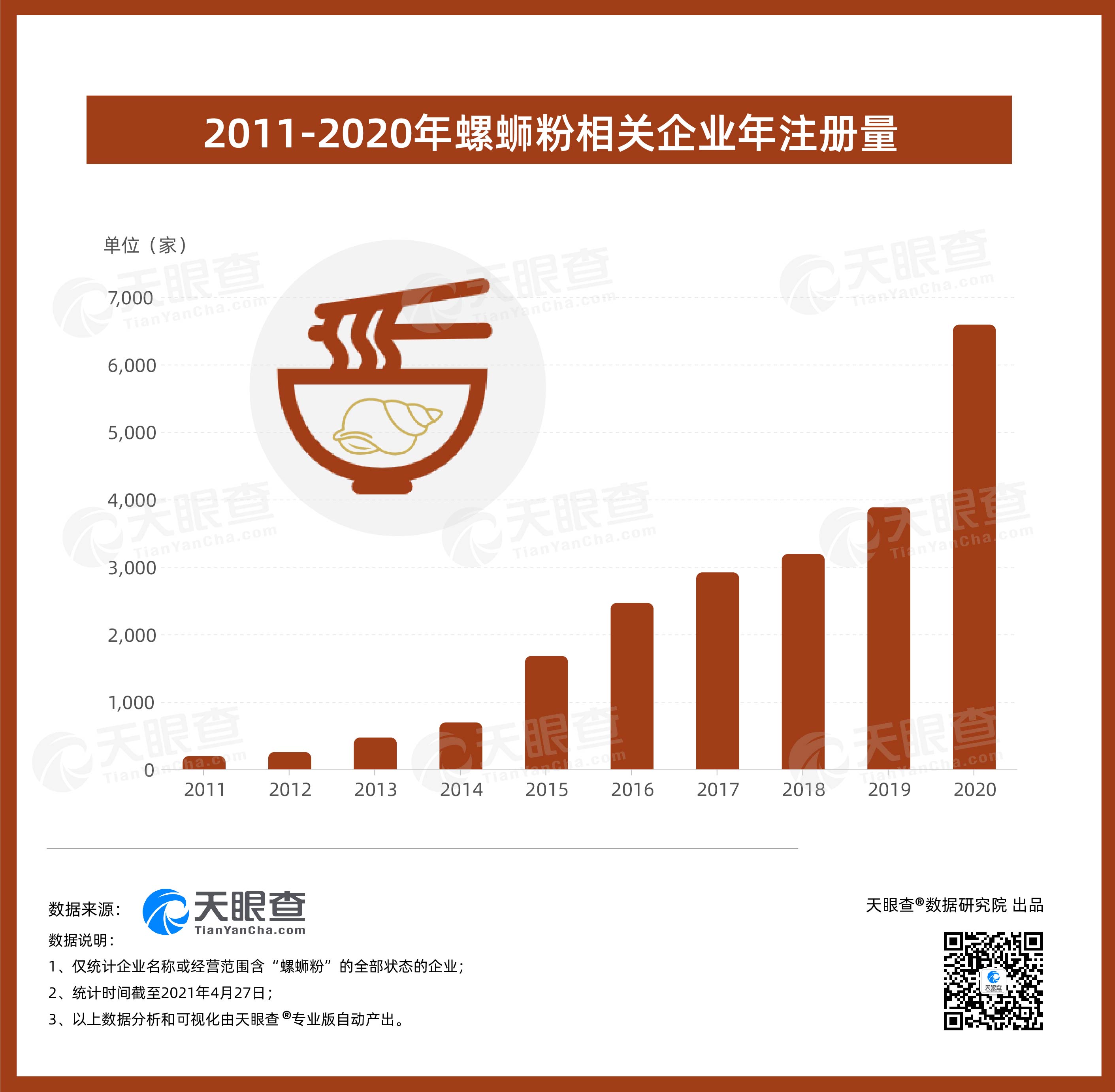 ????? 這碗起源于20世紀(jì)七八十年代夜市的地方小吃,如今是柳州最亮眼的新名片之一。從2014年底第一家袋裝螺螄粉企業(yè)誕生,到2020年產(chǎn)值超百億元,僅僅用了6年時(shí)間。袋裝螺螄粉如今遠(yuǎn)銷海外20多個(gè)國家和地區(qū),約25萬個(gè)就業(yè)崗位遍布在全產(chǎn)業(yè)鏈各個(gè)環(huán)節(jié)。天眼查數(shù)據(jù)顯示,我國目前有超1.8萬家企業(yè)名稱或經(jīng)營范圍含“螺螄粉”,且狀態(tài)為在業(yè)、存續(xù)、遷入、遷出的螺螄粉相關(guān)企業(yè)。其中,近9成的相關(guān)企業(yè)注冊時(shí)間在5年之內(nèi)。