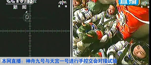 神舟九號(hào)與天宮一號(hào)進(jìn)行手控交會(huì)對(duì)接試驗(yàn)