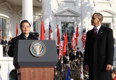 | 路透社援引分析家的話稱,鑒于中國(guó)的軍事和外交影響不斷壯大,并成為僅次于美國(guó)的第二大經(jīng)濟(jì)體。貿(mào)易問(wèn)題、能源問(wèn)題等都是雙方關(guān)注的重點(diǎn)話題。英國(guó)廣播公司網(wǎng)站開設(shè)專題,刊登多篇文章關(guān)注胡錦濤訪美。評(píng)論稱,奧巴馬在白宮舉行13年來(lái)第一次歡迎中國(guó)國(guó)家元首的盛大國(guó)宴,也許能夠以此緩和目前兩國(guó)之間的緊張關(guān)系。報(bào)道稱,人民幣匯率、朝鮮和雙邊軍事關(guān)系將是胡錦濤和奧巴馬會(huì)談的主要議題。 …[詳細(xì)] |