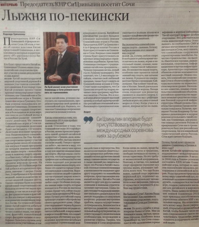 2014年1月28日,中國駐俄羅斯大使李輝就習近平主席應俄羅斯總統(tǒng)普京邀請出席索契冬奧會接受俄政府報紙《俄羅斯報》專訪。