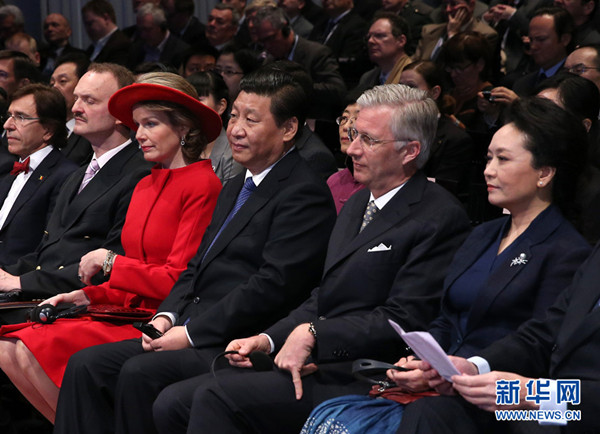 ????比利時(shí)王后瑪?shù)贍柕潞褪紫嗟蠀尾?、歐洲理事會(huì)主席范龍佩以及歐洲學(xué)院師生代表、比利時(shí)各界友好人士、各國(guó)駐比利時(shí)和歐盟使節(jié)等出席。