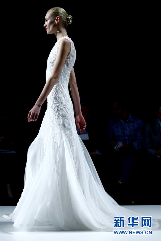 特在T臺上展示西班牙女服裝設(shè)計(jì)師Rosa Clara的婚紗作品。Rosa Clara同時(shí)也是來自巴塞羅那當(dāng)?shù)氐囊粋€婚紗品牌。