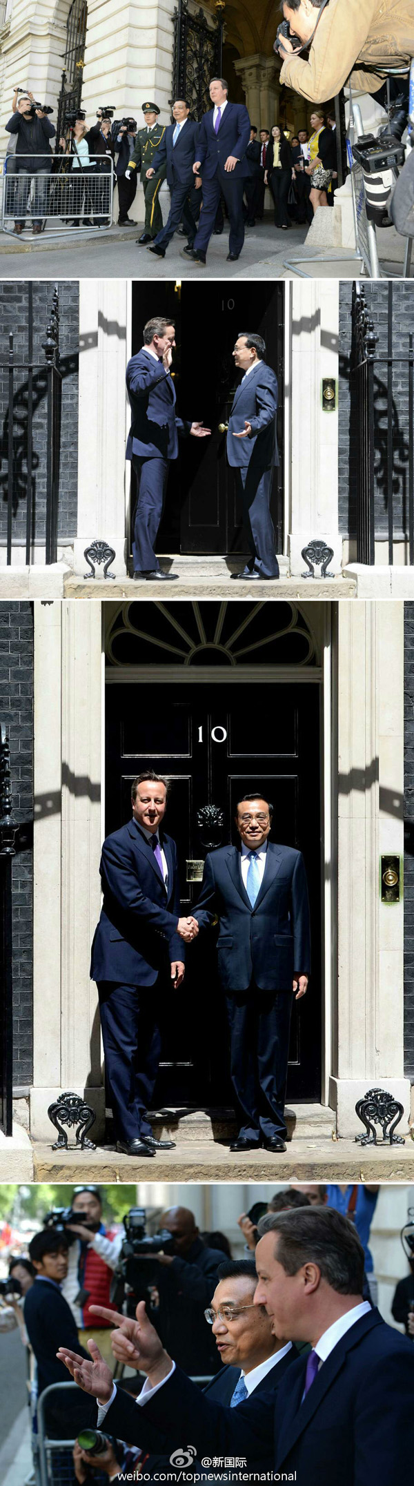 新華網(wǎng)北京6月17日電 據(jù)新華社“新國(guó)際”微博報(bào)道,17日,英國(guó)首相府所在的唐寧街附近五星紅旗飄揚(yáng),卡梅倫為到訪的李克強(qiáng)總理舉行隆重歡迎儀式。隨后,兩位領(lǐng)導(dǎo)人步行來到首相官邸。面對(duì)中外記者的鏡頭,李克強(qiáng)與卡梅倫握手合影,愉快交談。在首相府一層內(nèi)閣會(huì)議室內(nèi),兩位領(lǐng)導(dǎo)人就雙邊關(guān)系和共同關(guān)心的問題舉行會(huì)談。