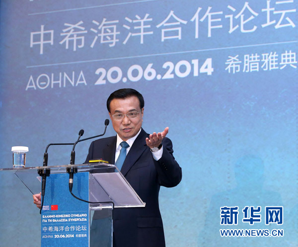 ??? 6月20日,國務(wù)院總理李克強在雅典與希臘總理薩馬拉斯共同出席中希海洋合作論壇并發(fā)表演講。新華社記者 龐興雷 攝