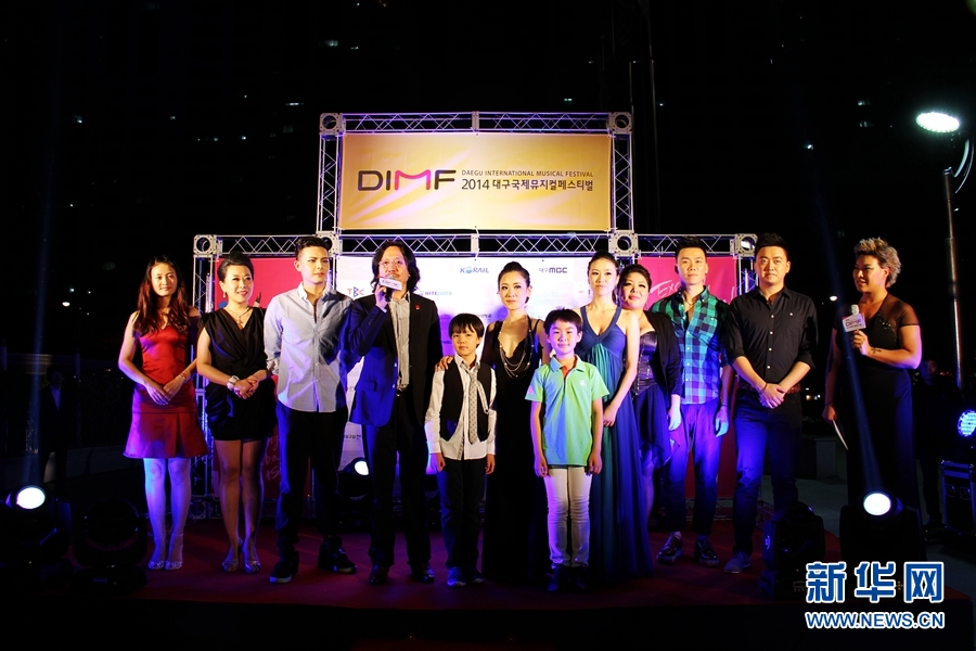 ??? 《媽媽再愛我一次》制作人李盾(左四)與主演們亮相大邱國(guó)際音樂劇節(jié)。