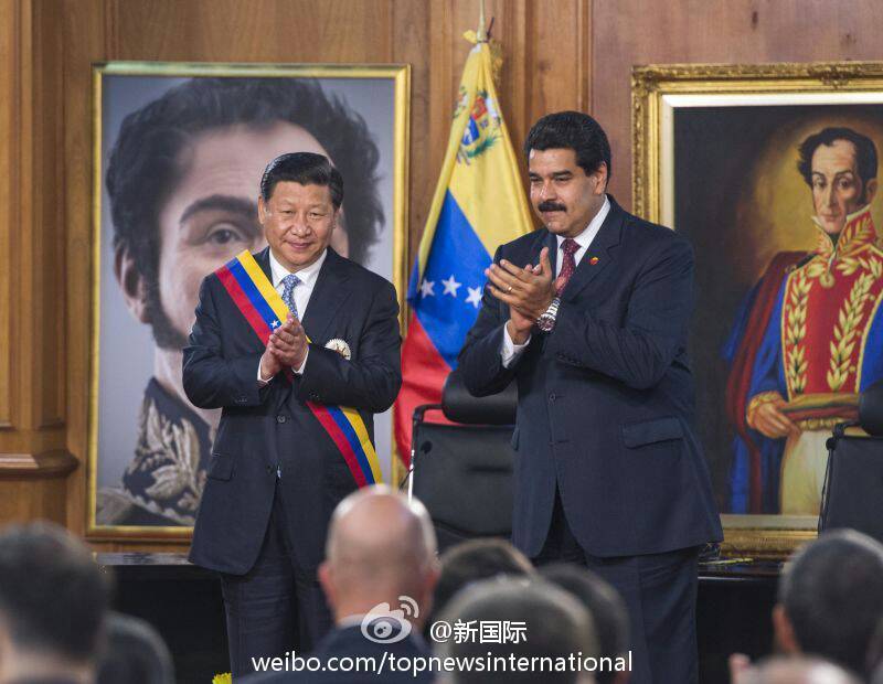 ??? 新華網(wǎng)北京7月21日電 據(jù)新華社“新國際”微博報(bào)道,習(xí)近平20日被委內(nèi)瑞拉總統(tǒng)馬杜羅授予“解放者”勛章。習(xí)近平說,這不僅是給予我個(gè)人的榮譽(yù),更體現(xiàn)了總統(tǒng)先生和委內(nèi)瑞拉政府對(duì)中委關(guān)系的高度重視。中委友誼必定像南美洲奧里諾科河一樣綿延不絕、生生不息。(王曄攝)
