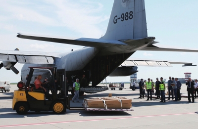 載運(yùn)第一批遇難者遺體的兩架軍用運(yùn)輸機(jī)23日離開烏克蘭東部城市哈爾科夫,啟程前往荷蘭。
