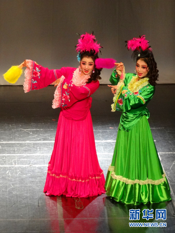 9月18日晚,在西班牙巴塞羅那,中國(guó)貴州京劇院給當(dāng)?shù)赜^眾帶來(lái)的京劇版《堂吉訶德》。圖為演員在臺(tái)上表演(記者周喆攝)