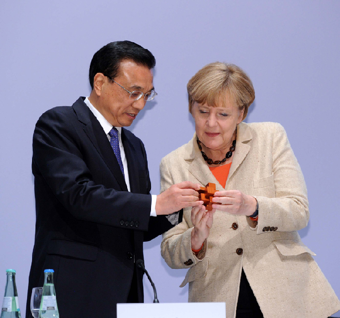 與默克爾共同出席第七屆中德經濟技術合作論壇時,李克強在致辭最后提起,這次默克爾總理陪他逛了當?shù)匾患页?,買了兩張明信片送給他的家人,而他也帶來一份禮物,是中國天津中德職業(yè)技術學院學生的作品,學生們希望他在公開的場合把這個禮物送給默克爾,以表達對中德制造業(yè)深度融合的期待。