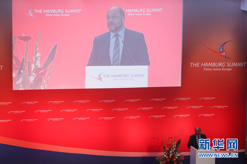 ??? 10月11日,在德國漢堡舉行的中歐論壇漢堡峰會(huì)上,歐洲議會(huì)主席馬丁?舒爾茨發(fā)言。中歐論壇漢堡峰會(huì)第六屆會(huì)議11日在德國漢堡閉幕。本屆峰會(huì)以“中國與歐洲相遇”為主題。來自中歐政治、經(jīng)濟(jì)和學(xué)術(shù)界的500多位代表聚集在一起,探討中歐經(jīng)貿(mào)合作未來趨勢、中國經(jīng)濟(jì)的綠色發(fā)展等重要議題。新華社記者張帆攝
