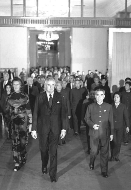 ????惠特拉姆被澳大利亞人譽(yù)為“澳中建交之父”。幾乎與基辛格博士秘密訪華同時(shí),惠特拉姆1971年7月率澳大利亞工黨代表團(tuán)訪華。惠特拉姆次年贏得選舉并出任澳大利亞總理后,立即推動(dòng)了澳大利亞與新中國(guó)正式建交,使澳大利亞成為較早與新中國(guó)建交的西方國(guó)家之一。