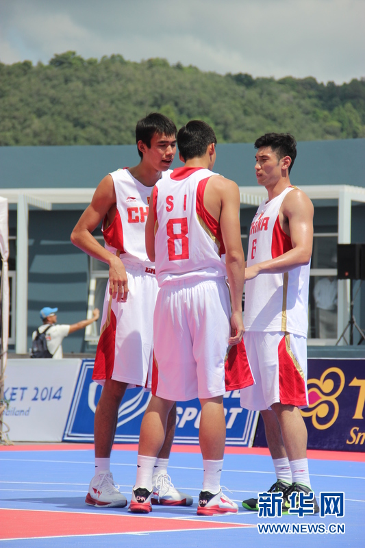 ??? 11月16日,中國沙灘籃球運(yùn)動(dòng)員劉桂均(左)、司坤(中)、劉洺宇(右)在比賽中場。中國體育代表團(tuán)16日在泰國普吉舉行的第四屆亞洲沙灘運(yùn)動(dòng)會(huì)上勇奪2枚金牌和2枚銅牌。當(dāng)天比賽全部結(jié)束時(shí),中國隊(duì)以3金2銀5銅的成績暫列獎(jiǎng)牌榜第五。新華社發(fā)(塔納攝)
